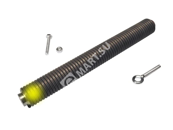Балансировочная пружина желтая применяется в моделях шлагбаумов со стрелой от 2 до 3 метров, а также при установке на стрелу дополнительных средств безопасности и с целью обозначения искуственного препятсвия. В комплект входят натяжные болты, на концах которых предусмотрены кольца для крепления к штатным элементам кострукции.