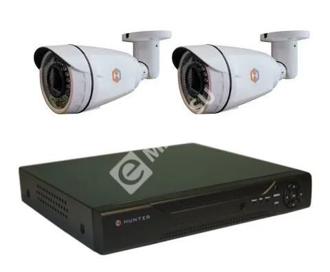 Hunter IP KIT-2/58 - готовый комплект видеонаблюдения для наружней установки. Состоит из двух видеокамер с разрешением 1080р и сетевого восьмиканального видеорегистратора.
