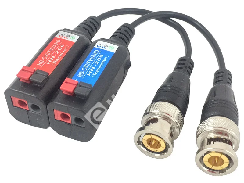HN-206 – универсальный пассивный приемопередатчик видеосигнала, имеющий BNC/клеммное исполнение и передающий сигнал с разрешением 1080p формата AHD по витой паре 5-й категории на расстояние до 320 метров. Кабель фиксируется с помощью замозажимных клемм.