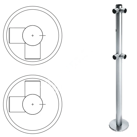 OXGARD ВЗР 1996.09.52 - Стойка ограждения с отверстием под фиксатор L-образная представляет собой трубу из шлифованной нержавеющей стали с одним отверстием для крепления фиксатора под поворотные створку и секцию и двумя муфтами с крепежом. Стойка ограждения обеспечивает четкую фиксацию и формирование зоны прохода, которое достигается за счет установки дополнительных ограждений. Данная модель используется для эффективного ограждения на проходных банков, административных учреждений, аэропортов. Модель идеально дополняет турникеты, применяется в системе с другими стойками, выполняющимися в едином дизайне. Конструкция стойки делает монтаж простым и позволяет создавать всевозможные конфигурации ограждения с поворотом на необходимый угол.