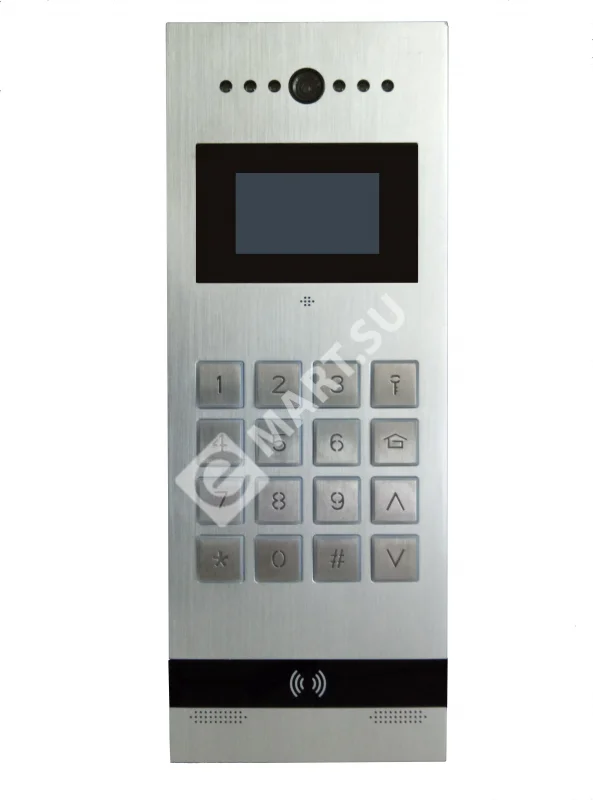 - Прочный алюминиевый корпус - Анимированный TFT дисплей - Простое подключение с помощью разъемов RJ-45 (подключение по стандарту T568B) - Большие подсвечиваемые кнопки - Дополнительные кнопки вызова консьержа, набора кода и навигации. - Подключение датчика положения двери - Подключение кнопки выхода