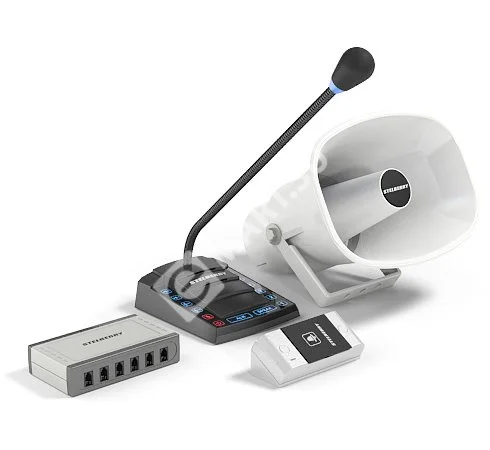 Комплект 1+6-канального переговорного устройства клиент-кассир для АЗС с системой громкого оповещения.