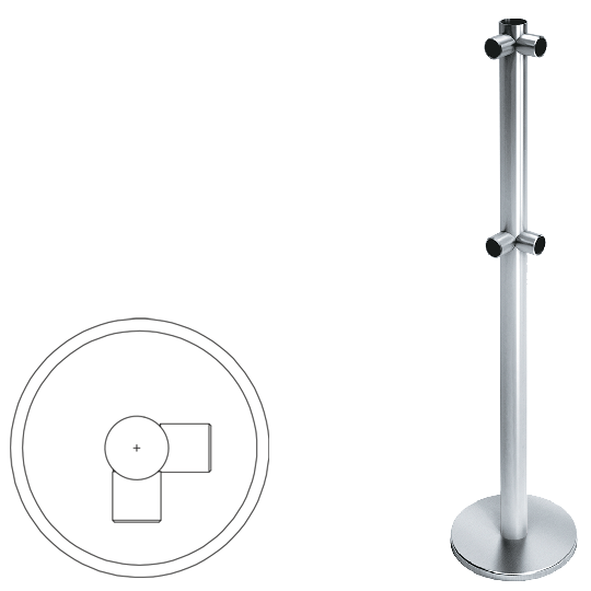 OXGARD ВЗР 2442.03 - Стойка ограждения L-образная передвижная предназначена для организации ограждений мобильных полуростовых. Стойка выполнена из шлифованной нержавеющей стали с гнездом. Содержит 4 муфты с крепежом угол 90 градусов.
