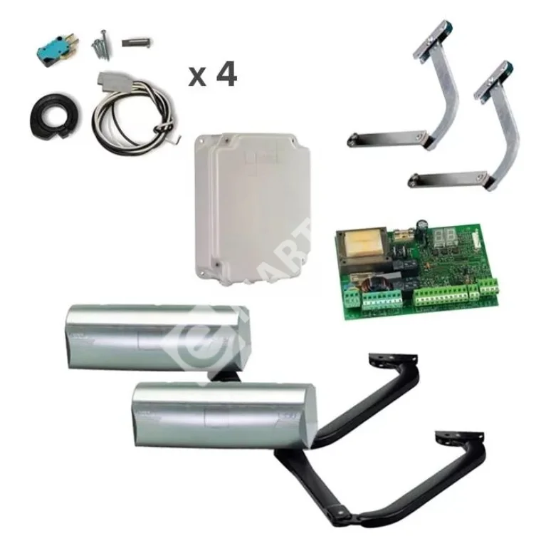 Комплект приводов для распашных ворот электромеханический рычажный FAAC 390, 230В, c рычагами и концевыми выключателями. Самоблокирующийся редуктор. Максимальный крутящий момент 250Нм. Максимальная ширина створки 3000 мм. Максимальный вес створки до 350 кг.