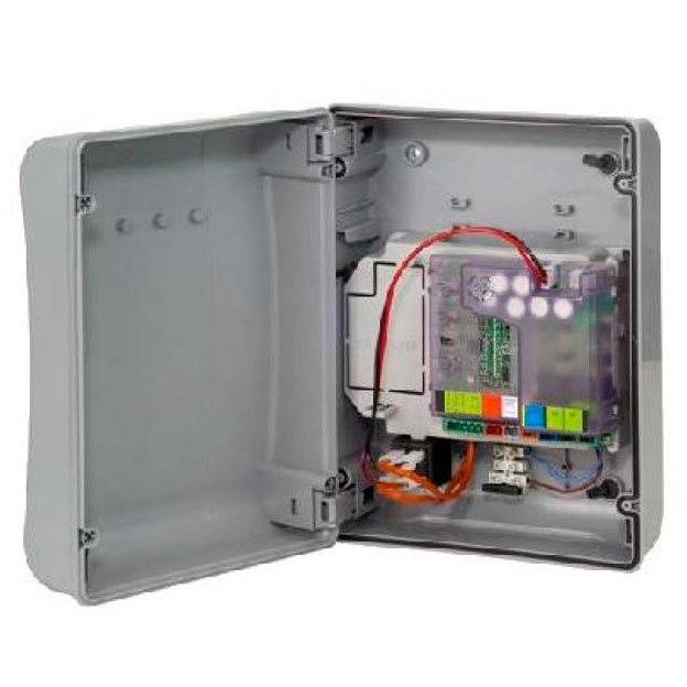 Плата управления FAAC Е024 S в корпусе с трансформатором для приводов распашных ворот 24В. Плата управления Е024 S может управлять одним или двумя приводами. Входы фотоэлементов BUS 2EASY. Радиоразъем XF.