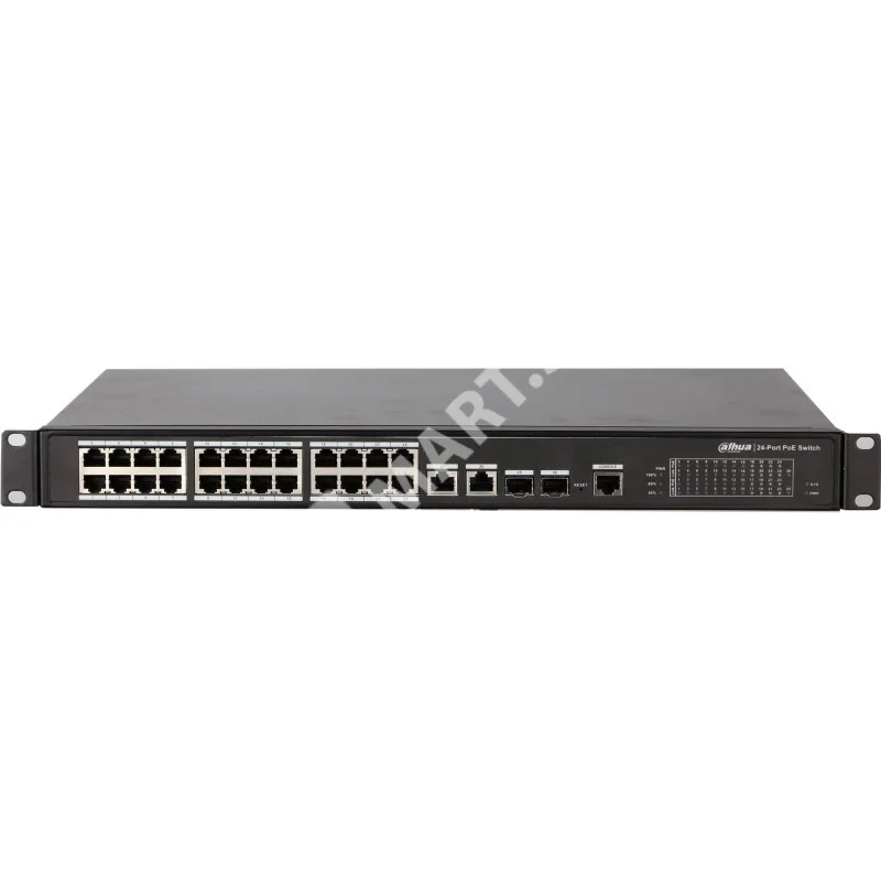Dahua DH-PFS4226-24ET-240 - Управляемый коммутатор оснащен функционалом уровня L2+, укомплектован четырьмя комбинированными гигабитными портами (2 BASE-T и 2 Base-X) и 24 Fast Ethernet портами RJ-45 с поддержкой РоЕ (Base-T)