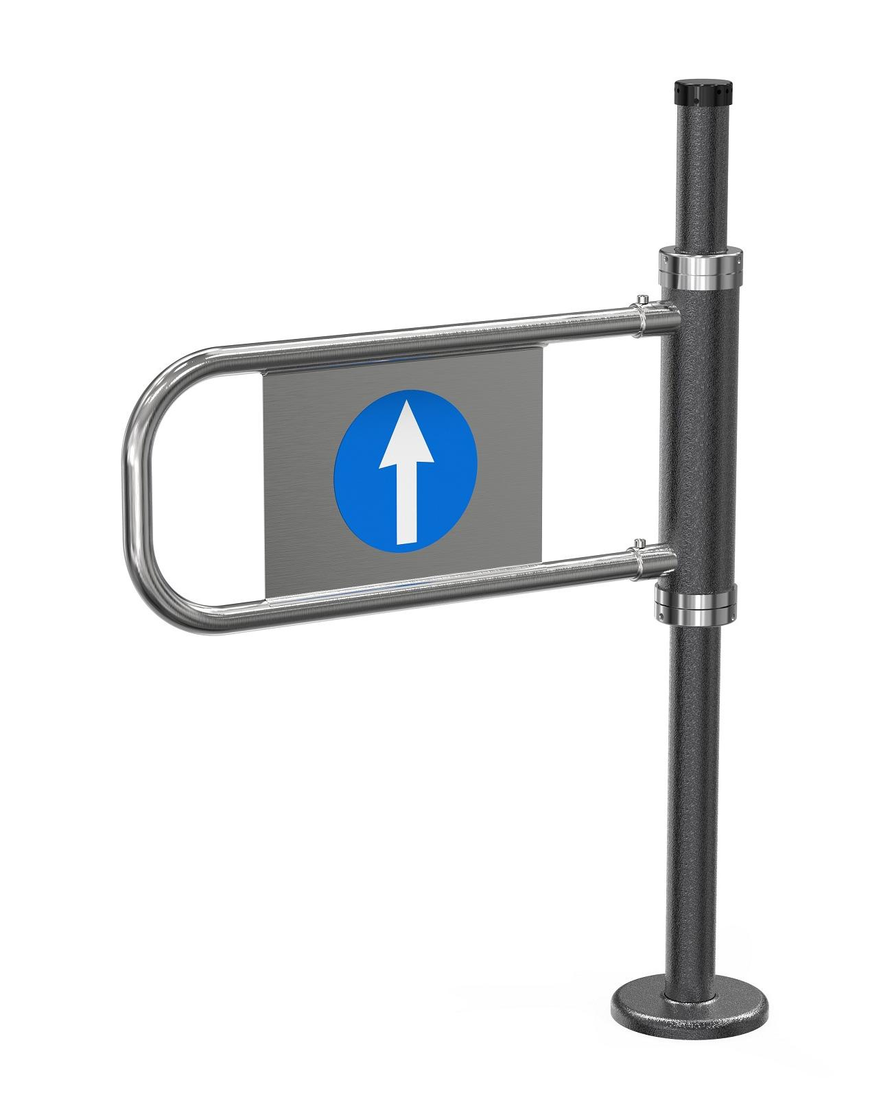 Калитка односторонняя, дуга проворачивается только в одну сторону на 90° по часовой стрелки.