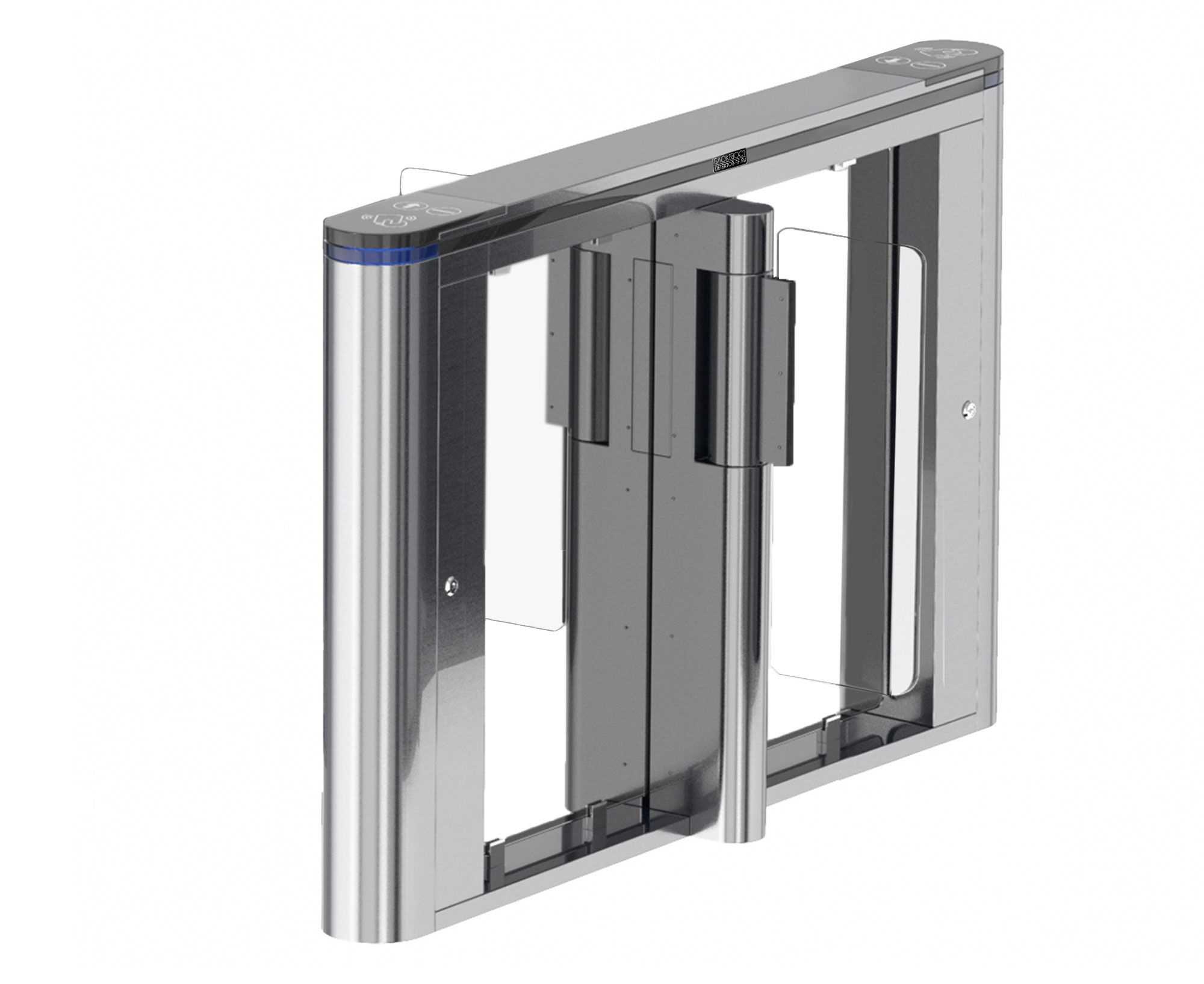 Блокпост РСП 1600 — это преграждающая конструкция, имеющая створки, которые закреплены на вертикальных валиках и могут распахиваться как в одну сторону, так и в другую. Распашной турникет оборудован функцией «Антипаника». Эта функция автоматически освобождает проход в экстренных случаях или при сбое электропитания, также она может быть активирована с пульта ДУ.