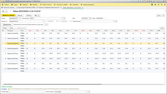 снижение трудоемкости составления табелей учета рабочего времени в 1С