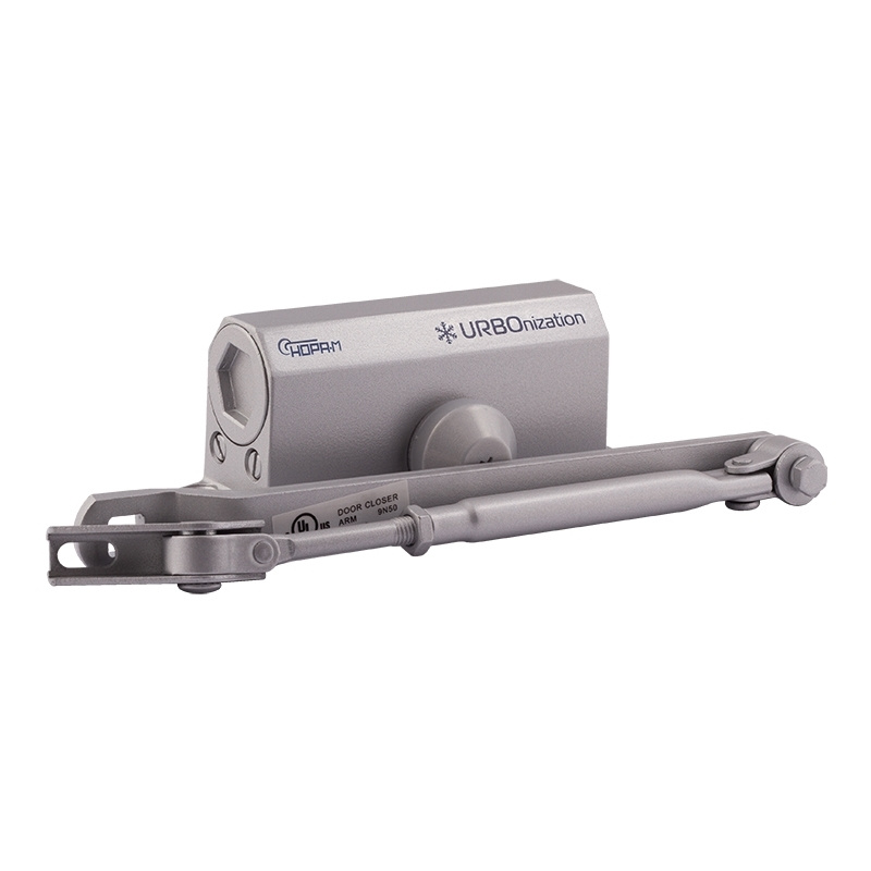 Дверной доводчик 510F с функцией фиксации двери в открытом положении предназначен для установки на межкомнатные и входные двери весом от 15 до 60 кг.