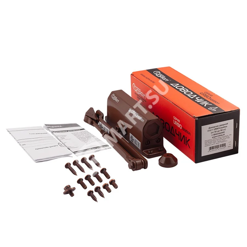Дверной доводчик 530F с функцией фиксации двери в открытом положении предназначен для установки на межкомнатные и входные двери весом от 50 до 90 кг. Функция фиксации срабатывает автоматически при открытии двери на 90 и более градусов. Угол фиксации может меняться в зависимости от места установки доводчика на двери (ближе или дальше от петель). Доводчик морозостойкий, и работает при температурах от -45 до +60 градусов по Цельсию. Рабочий ресурс механизма составляет не менее 750 000 циклов открывания и закрывания. В комплекте поставляется два вида крепежа - шурупы для установки на деревянные и пластиковые двери, и винты для установки на металлические двери. Скорость закрывания и дохлопа регулируется при помощи винтов. Подробная информация по установке и регулировки доводчика содержится в инструкции (есть в индивидуальной упаковке каждого изделия). Доводчик сертифицирован на соответствие требованиям ГОСТ Р 5091-78, 56177-2014. Угол открытия двери зависит от установки доводчика. Если корпус доводчика установлен на дверной короб, то угол открытия будет максимальным - до 180 градусов. Если корпус доводчика установлен на дверное полотно, то угол открытия зависит от места установки относительно петель - чем дальше доводчик от петель, тем меньше угол открытия.