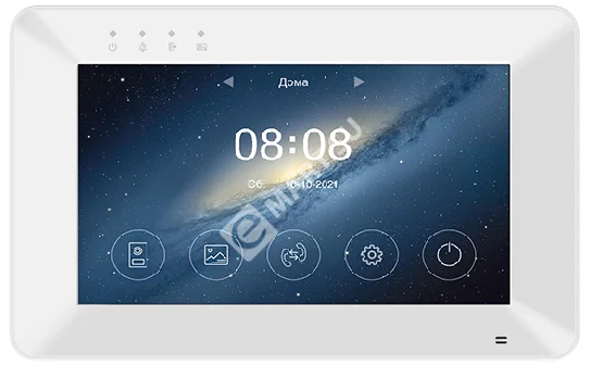 Монитор цветного видеодомофона 7", разрешение 1024x600, hands free, с поддержкой форматов CVBS и 720p/1080p (AHD/CVI/TVI) и функцией Wi-Fi (может работать в беспроводных или проводных сетях Ethernet). Адаптирован для работы с цифровыми многоквартирными домофонами. Возможность связи вызывных панелей с приложением "vhOme 2.2" для iOS и Android. Встроенная память на 50 фото или 6 видео. Запись фото или видеона microSD карту до 128 ГБ (в комплект не входит). Запись по детектору движения, по одному каналу. Питание 220В, габариты: 205х128х19мм. Монитор с поддержкой форматов AHD/CVI/TVI 1080р/720p или CVBS (PAL/NTSC), с возможностью отправки уведомлений о вызове на смартфон в мобильное приложение "vhOme 2.2", удаленный просмотр на смартфоне вызывных панелей и видеокамер, удаленное управление замками или воротами, подключенными к вызывным панелям и просмотр записей на SD карте.