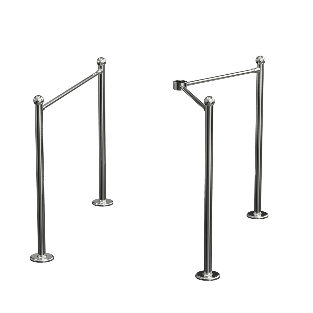 Ограждение прямое для полуростовых роторных турникетов ОП-Р ХРОМ состоит из четырех стальных стоек с унифицированными крепежными узлами (муфтами) и четырех горизонтальных хромированных перемычек. Внизу стоек расположены кожухи, под которыми находятся фланцы с тремя отверстиями диаметром 11 мм для крепления ограждений к полу.