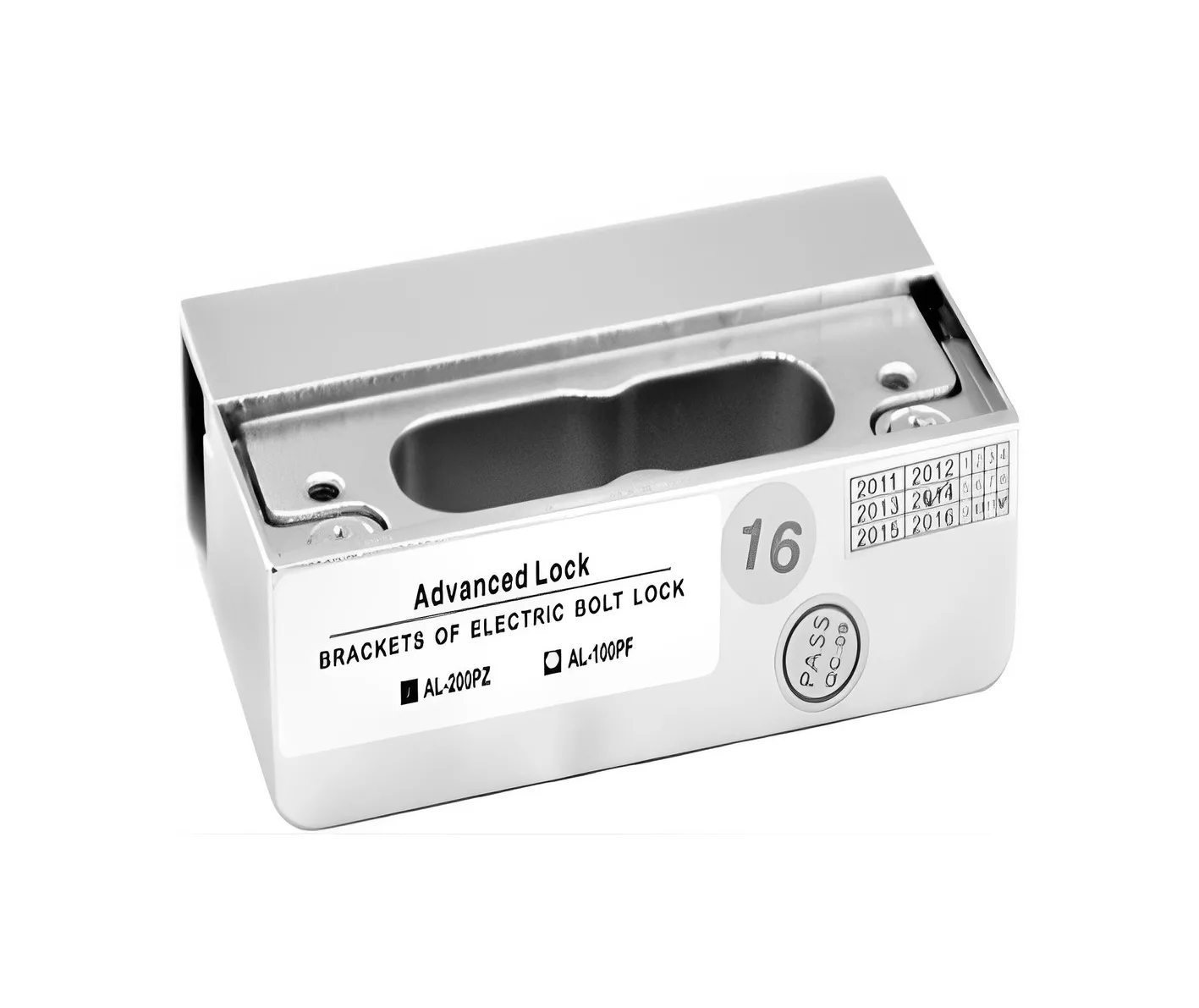 Кронштейн ZKTeco AL-100PF позволяет закрепить запорную планку электромеханического замка AL-100 на бескамерные стеклянные двери толщиной 8-12 мм.