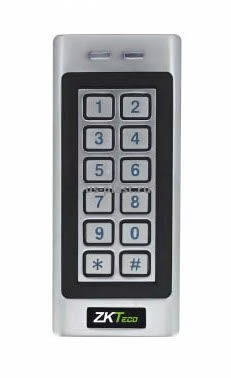 ZKTeco MK-V (MF) оснащен клавиатурой с подсветкой, тампером, многоцветным индикатором состояния, программируемым релейным выходом, входом для кнопки выхода, динамиком. Питание — 9 ~ 18 В DC. Потребляемый ток в режиме ожидания — 50 мА, в активном режиме — 80 мА. Габариты — 130×55×23 мм, вес — 490 г. В комплект включен диод 1N4004 для защиты релейной цепи, саморезы, дюбели, отвертка.