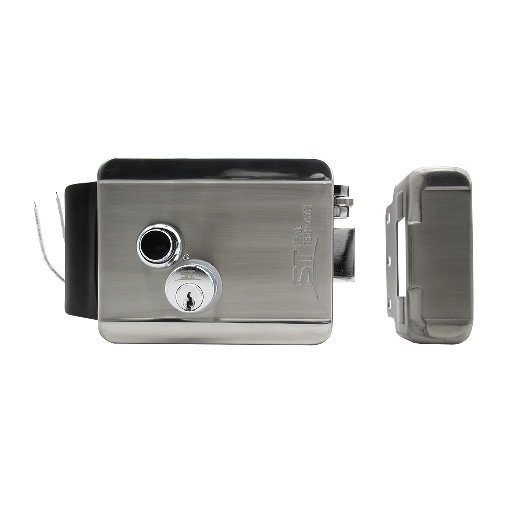 Замок электромеханический ST-EL-06 (N/2C/B/SS), Рабочее напряжение: DC12В±15%, Ток потребления: 1,7А, Время подачи отпирающего сигнала: Не более 1-3сек, Тип цилиндра: двойной , Наличие мех.кнопки/возможность блокировки кнопки: да/да, нержавеющая сталь, Степень защиты: IP55, Цвет: Серебро, –40..+70°С, 125х98х36 мм