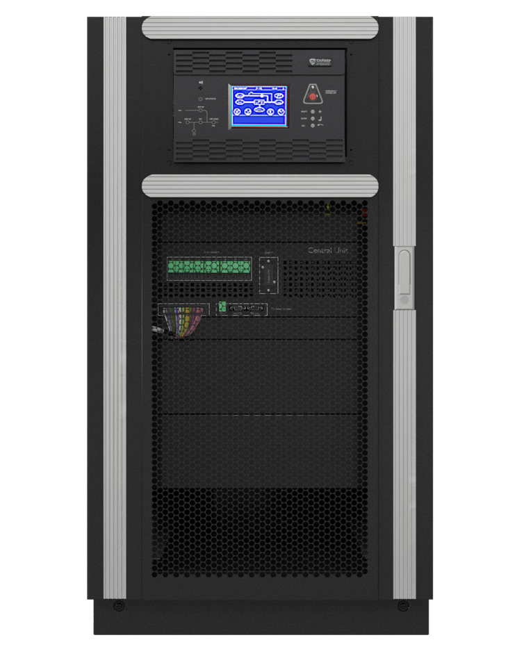 ИБП Сайбер Электро ПАТРИОТ-60Ш , вход 3Ф, выход 3Ф, максимальная мощность 60кВА/54кВт при установке 3х силовых модулей ПАТРИОТ-20М, без батарей, габариты 1100 x 600 x 900, масса шкафа (без силовых модулей) 120 кг.