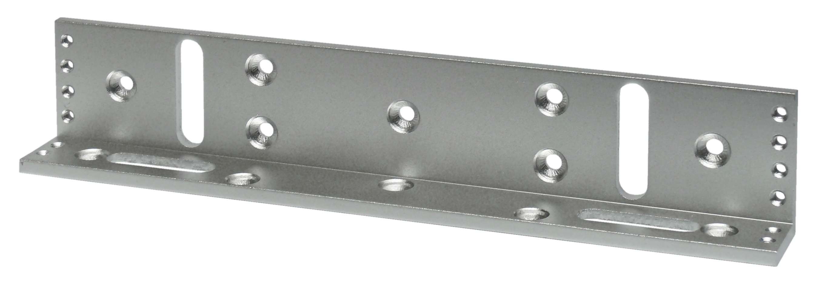 Кронштейн L типа выполнен из алюминия и предназначен для крепления электромагнитных замков на двери, открывающиеся наружу, когда ширина дверной коробки не допускает непосредственный монтаж замка .
