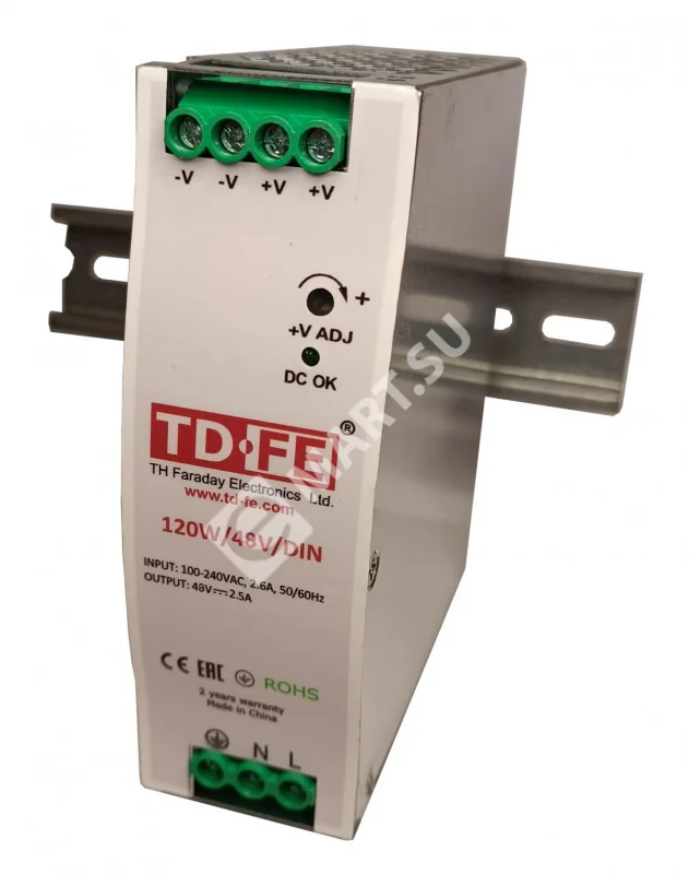 Разработан для систем автоматики Сертифицирован (EAC, CE, ROHS) Uвых. = 48 В. Iвых. = 2.5 A Автоматическая защита от КЗ и перегрузки