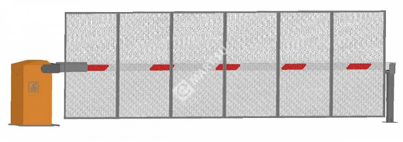 Имеет антивандальное исполнение, стрела выполнена из алюминиевой профильной трубы сечением 120х60мм с закрепленным на ней забором из алюминиевого ПВЛ листа. входит в комплект