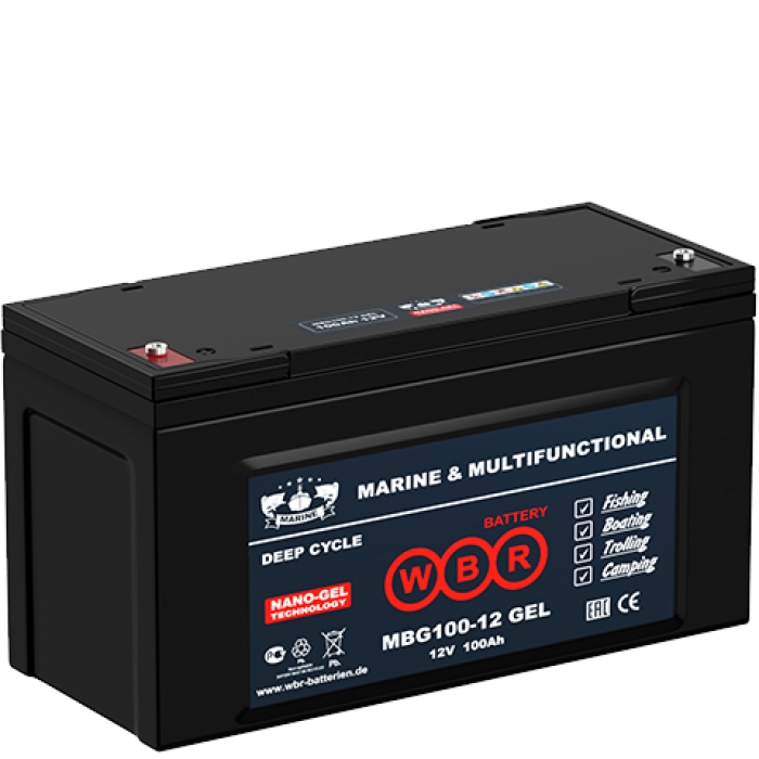 Аккумулятор WBR MBG100-12 - герметизированная, выполненная по технологии GEL, лодочная свинцово-кислотная аккумуляторная батарея. Обладает высоким качеством и надежностью, устойчива к глубоким разрядам и применяется для питания на яхтах, катерах и моторных лодках, а также возможны к применению как источники питания для электронасосов, эхолотов, осветительных приборов и другого вспомогательного оборудования.