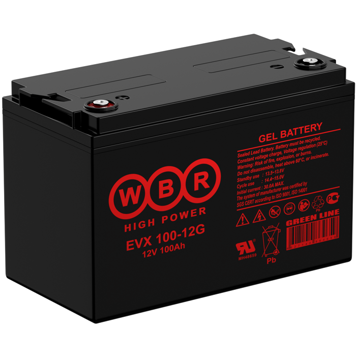 Аккумулятор WBR EVX100-12G - герметизированная, выполненная по гелевой (GEL) технологии, тяговая свинцово-кислотная аккумуляторная батарея. Обладает высоким качеством и надежностью, устойчива к глубоким разрядам и применяется для питания электрических транспортных средств, гольфкаров, газонокосилок, полотерных и поломоечных машин, медицинских колясок, электроинструмента, электронасосов, эхолотов, осветительных приборов, в том числе и наружного освещения, и другого вспомогательного оборудования.