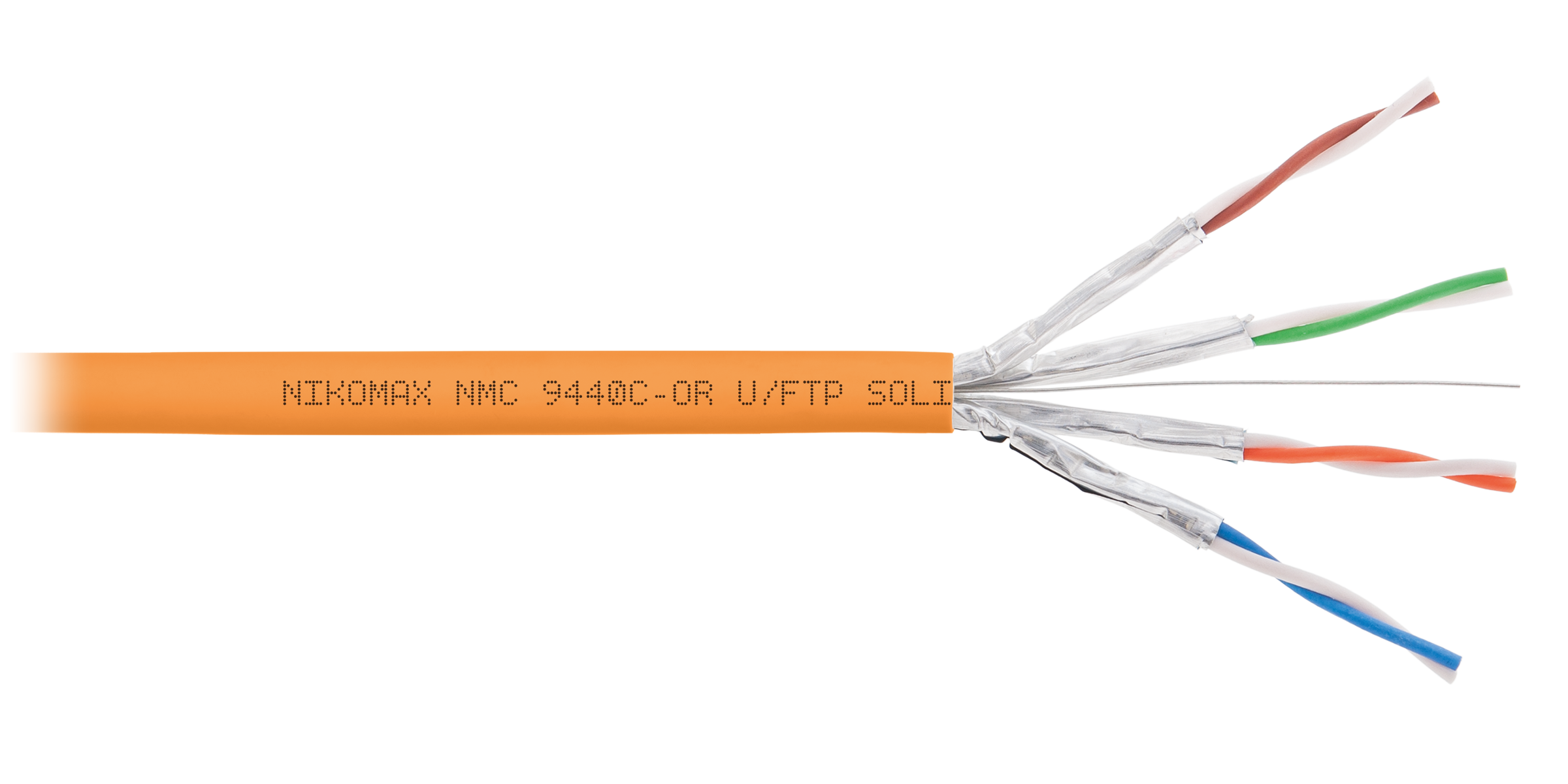 Кабель NIKOMAX U/FTP 4 пары, Кат.6 (Класс E), тест по ISO/IEC, 250МГц, одножильный, BC (чистая медь), 23AWG (0,57мм), полимерный материал нг(А)-HF, внутренний, оранжевый, 305м - гарантия: 15 лет / 25 лет системная