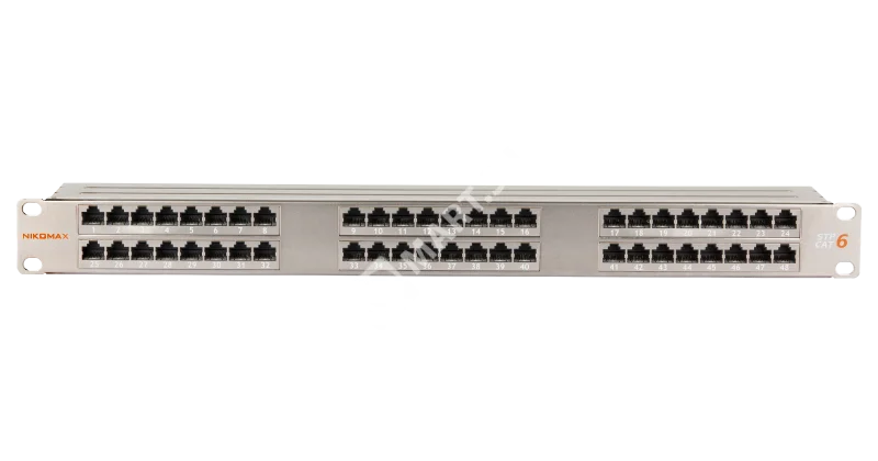 Коммутационная панель NIKOMAX 19", 1U, 48 портов, Кат.6 (Класс E), 250МГц, RJ45/8P8C, 110/KRONE, T568A/B, неэкранированная, с органайзером, черная - гарантия: 5 лет расширенная / 25 лет системная