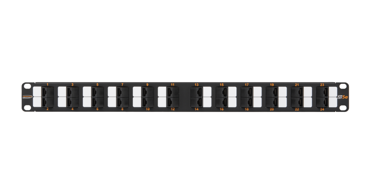 Коммутационная панель NIKOMAX 19", 1U, 24 угловых порта, Кат.5e (Класс D), 100МГц, RJ45/8P8C, 110/KRONE, T568A/B, неэкранированная, с органайзером, черная - гарантия: 5 лет расширенная / 25 лет системная
