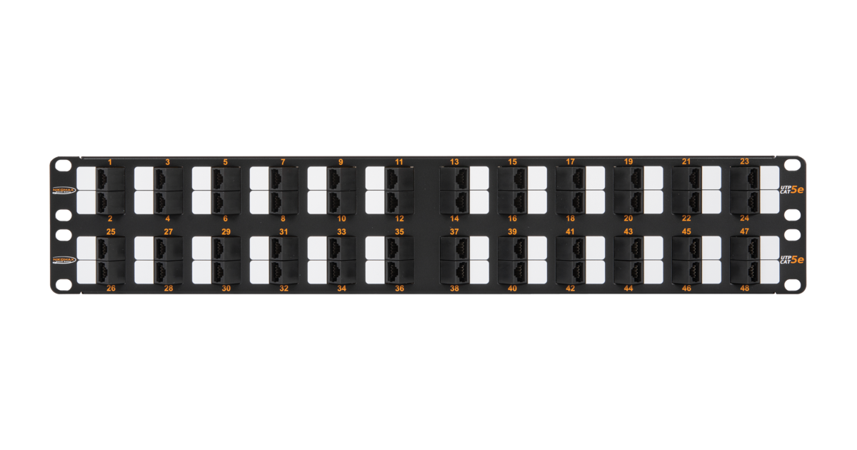 Коммутационная панель NIKOMAX 19", 2U, 48 угловых портов, Кат.5e (Класс D), 100МГц, RJ45/8P8C, 110/KRONE, T568A/B, неэкранированная, с органайзером, черная - гарантия: 5 лет расширенная / 25 лет системная