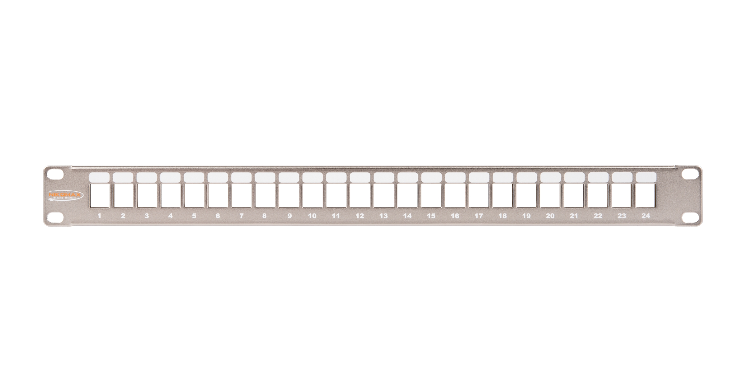 Коммутационная панель NIKOMAX 19", 1U, наборная, под 24 модуля Keystone, UTP/STP, с заземлением, с органайзером, металлик