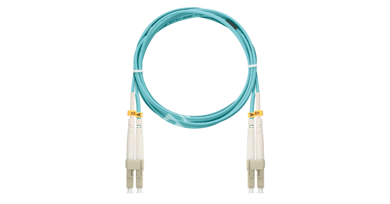 Шнур NIKOMAX волоконно-оптический, соединительный, многомодовый 50/125мкм, стандарта OM3, LC/UPC-LC/UPC, двойной, полимерный материал нг(A)-HF, 2мм, аква, 3м