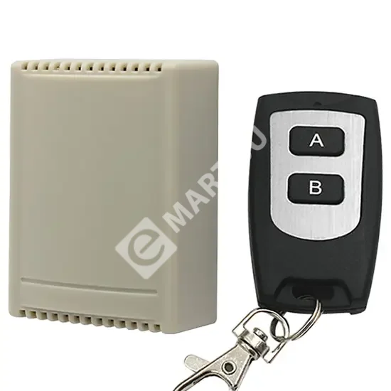 Комплект радиореле+1 пульт. 2 канала. НО и НЗ реле. Рабочая частота 433Мгц. Питание 12В DC. Дальность действия до 30 метров. Память на 40 передатчиков. Импульсный режим, режим триггер, режим триггер на разные кнопки.