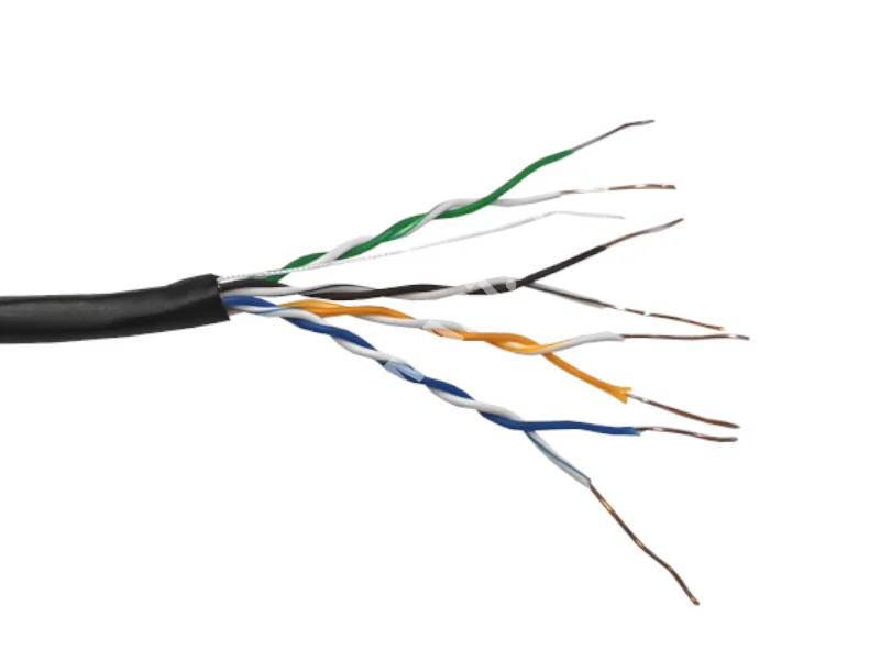 Кабель витая пара UTP 4 применяется в системах СКС при внешней прокладке. Предназначены для использования в высокоскоростных системах передачи данных со скоростью до 1Гбит/с. Кабель соответствует стандартам ANSI\TIA\EIA-568-B.2 Проходит Fluke тест на 100м Огнестойкость: UL VW-1, IEC-332.1 Арамидная нить позволяет легко удалять оболочку кабеля на необходимую длину. Технические характеристики: Проводник, d: медь (Cu), 24 AWG, одножильный Внешний d кабеля: 5,8 мм± 0,2мм Тип и цвет оболочки кабеля: PE черный Применение: для наружных работ Бухта: 305 м Проходит Fluke тест на 100 метрах Относительная скорость распространения сигнала (NVP): 72% Диапазон частот: 1-100 МГц Волновое сопротивление, Ом: 100 + -15 Дисбаланс сопротивления 5% Диапазон температур °С: Хранение: от -40 до +60 Прокладка: от 0 до +60 (при этом до начала прокладки кабель должен находиться в помещении с плюсовой темпе
