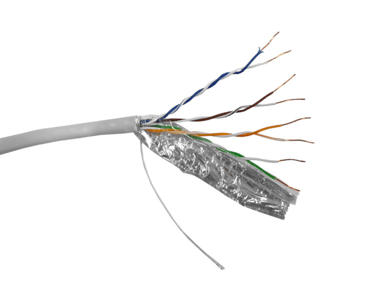 Кабель витая пара FTP 4 применяется в системах СКС. Кабель соответствует стандартам ANSI\TIA\EIA-568-B.2 Огнестойкость: UL VW-1, IEC-332.1 Арамидная нить позволяет легко удалять оболочку кабеля на необходимую длину. Экран - алюминиевая фольга. Дренажный проводник (жила заземления). Технические характеристики: Проводник, d: медь (Cu), 24AWG, одножильный Внешний d кабеля: 5,7 мм ± 0,2мм Тип и цвет оболочки кабеля: ПВХ серый Применение: для внутренних работ Бухта: 305 м Относительная скорость распространения сигнала кабеля для внутренних работ (NVP): 60% Диапазон частот: 1-100 МГц Волновое сопротивление, Ом: 100 + -15 Дисбаланс сопротивления 5% Диапазон температур °С: Хранение: от -40 до +60 Прокладка: от 0 до +60 (при этом до начала прокладки кабель должен находиться в помещении с плюсовой температурой не менее 24 часов) Эксплуатация: от -40 до +60 Радиус изгиба при прокладк