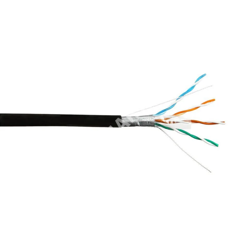 Кабель витая пара FTP 4 применяется в системах СКС для внешней прокладки. Кабель соответствует стандартам ANSI\TIA\EIA-568-B.2 Огнестойкость: UL VW-1, IEC-332.1 Внешняя оболочка: полиэтилен черного цвета, устойчивый к воздействию УФ лучей Экран - алюминиевая фольга. Дренажный проводник (жила заземления). Технические характеристики: Проводник, d: омедненный алюминий (CCA), 24AWG, одножильный Внешний d кабеля: 5,44 мм Тип и цвет оболочки кабеля: ПЭ черный Применение: для наружных работ Бухта: 305 м Относительная скорость распространения сигнала (NVP): 60% Диапазон частот: 1-100 МГц Волновое сопротивление, Ом: 100 + -15 Дисбаланс сопротивления 5% Диапазон температур, °С: Хранение - от -40 до + 75 Прокладка - от 0 до + 75 Эксплуатация - от -40 до +75 Радиус изгиба при прокладке - не менее 8D
