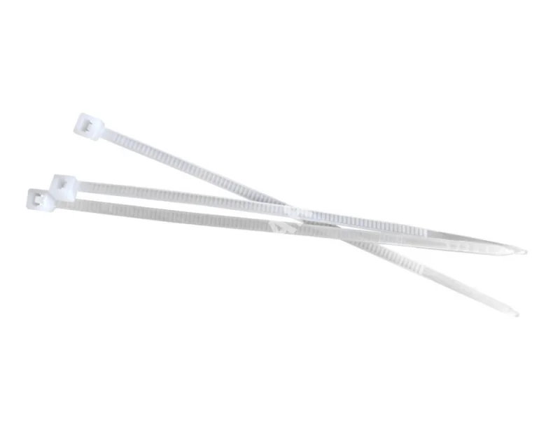 Допускается отклонение в размерах в пределах +/-3% Длина: 100мм Ширина: 2,5мм Прочность на разрыв (кг): 8 Упаковка: 100 шт. Цвет: белый Диапазон температур: эксплуатация от -35С до +85 С хранение от 0С до +40 С, при влажности от 50 до 70% (перед началом монтажа стяжки должны находиться в таких же условиях не менее 24 часов) Стяжки должны храниться вдали от обогревательных и отопительных приборов. рекомендуемая температура монтажа от +5С до +50 С Диаметр обхвата проводов и кабелей: от 2 до 22 мм Материал: нейлон 66 Замковый механизм одностороннего хода. Неразъемный