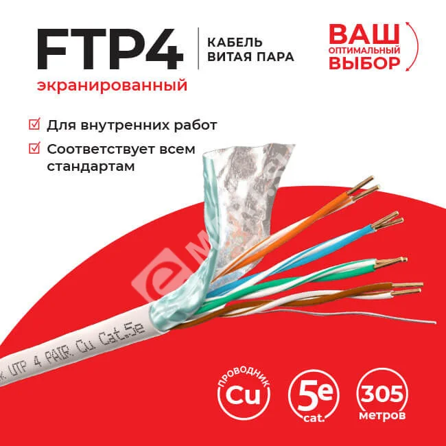 –Technolink Кабель FTP4 cat.5е, одножильный, экранированный, 305м, Cu