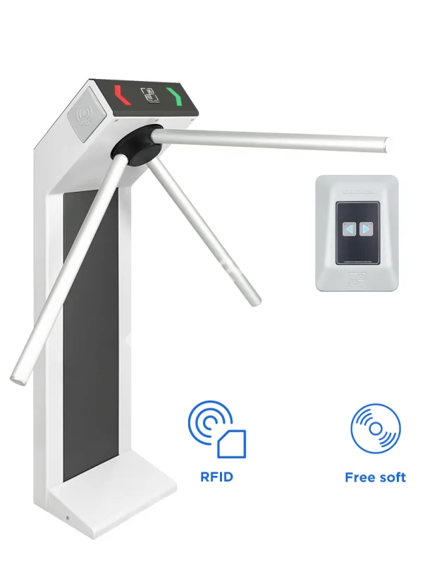 - Пульт управления в комплекте: Проводной пульт TW-02 позволяет оператору управлять турникетом в ручном режиме.