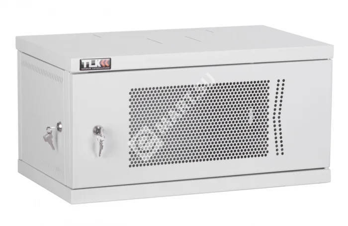 Настенный разборный шкаф TLK 19", 9U, перфорированная дверь, Ш600хВ436хГ350мм, 1 пара монтажных направляющих, серый..