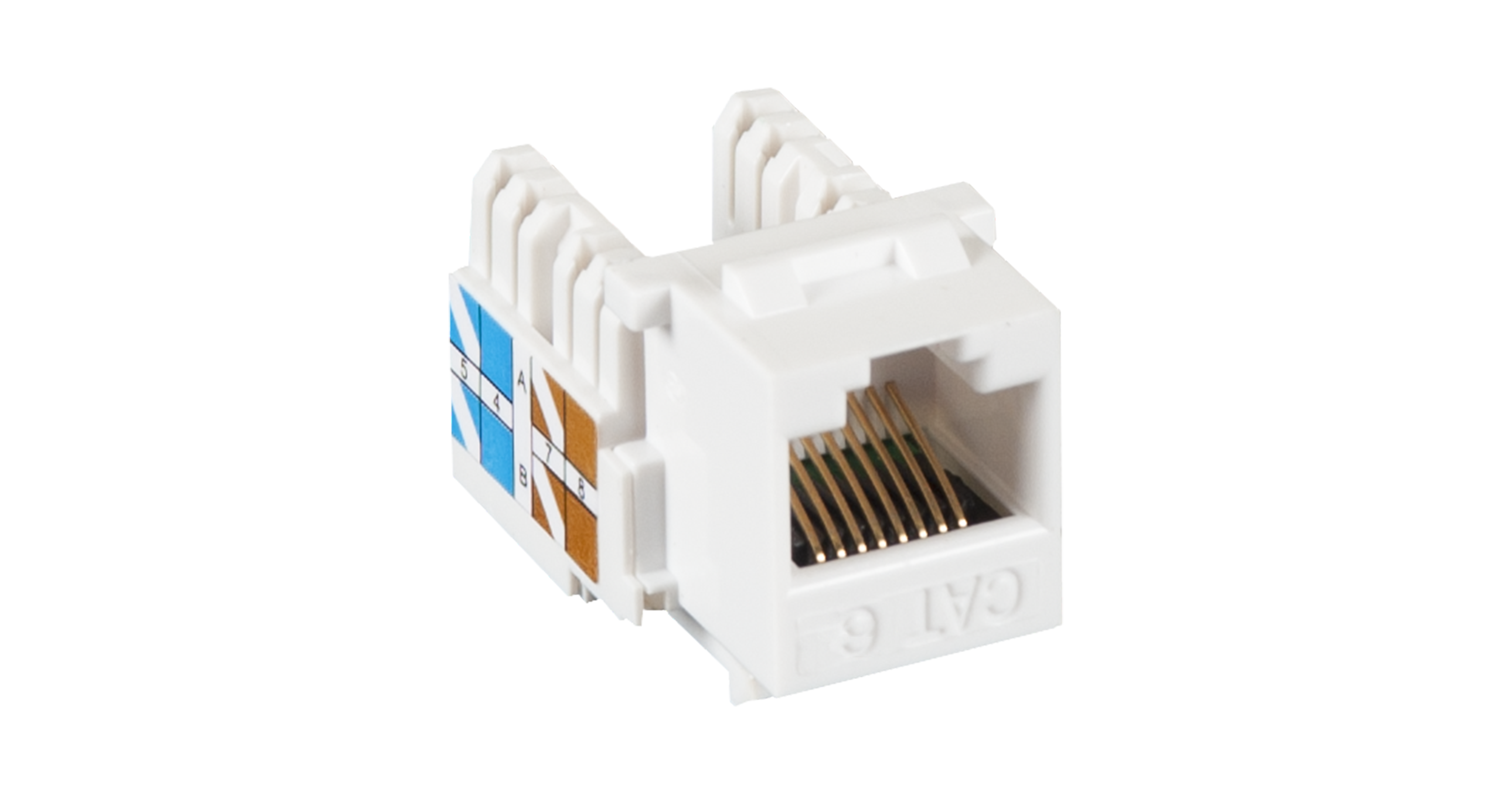 Модуль-вставка NETLAN типа Keystone, Кат.6 (Класс E), 250МГц, RJ45/8P8C, 110/KRONE, T568A/B, неэкранированный, белый, уп-ка 10шт.