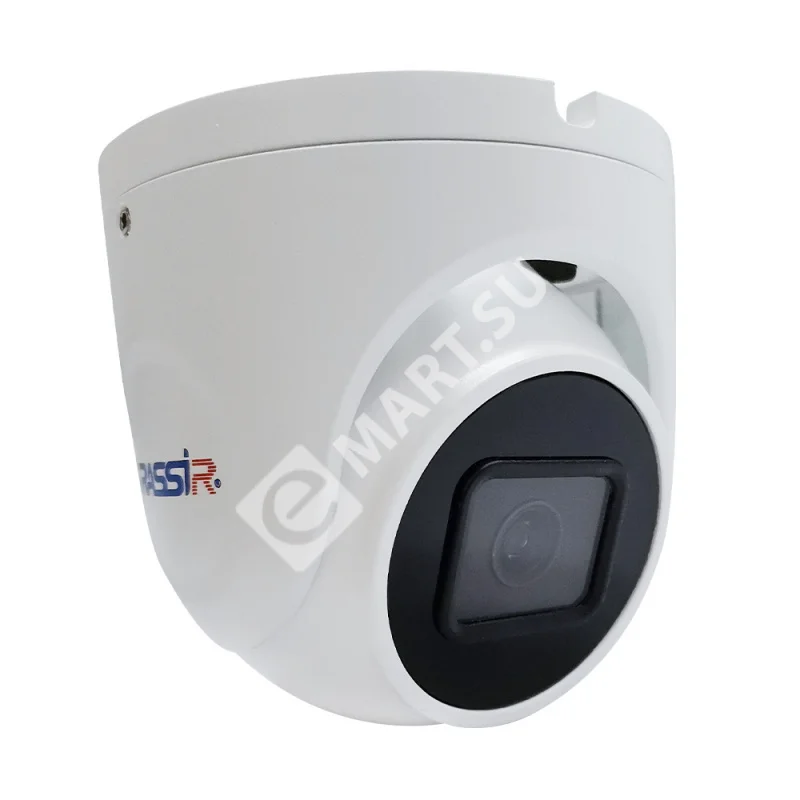 Камера выдает поток 2 Мп до 25/30 к/с, обеспечивает чистое изображение благодаря 3D‑DNR и детализацию при контровом свете за счет real WDR. Для удобной интеграции предусмотрены RJ‑45, встроенный микрофон и функции интеллектуальной видеоаналитики: детекция лиц и людей, пересечение линий, контроль области, подсчет посетителей, детектор праздношатания и автомобилей. Поддерживается TRASSIR Cloud для удаленного доступа. Максимальное энергопотребление — 5,3 Вт, габариты Ø93 × 92,2 мм, масса около 400 г.