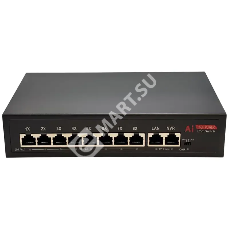 - 2 гигабитных Uplink-порта: Два порта 10/100/1000 Мбит/с предназначены для подключения видеорегистратора (NVR) и сети интернет-провайдера, обеспечивая высокоскоростную передачу данных без узких мест.